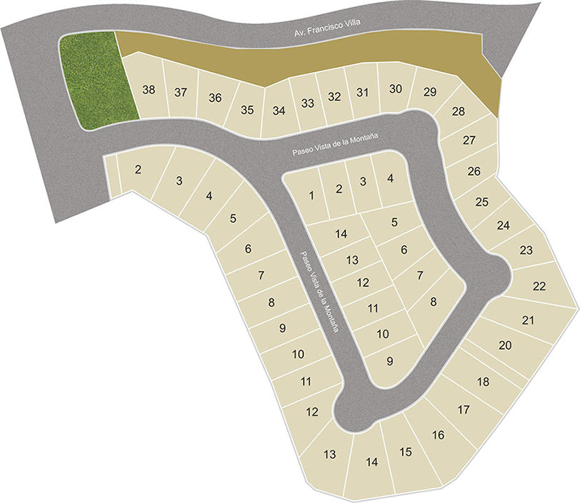 Una vez alcanzada la cima, se llega al desarrollo residencial conformado por lotes con variedad de tamaños que permitirán desarrollar diseños en las residencias donde se aprovechan al máximo espacios e imponentes vistas que la privilegiada ubicación ofrece desde lo alto, así como disfrutar la armonía de su entorno natural.